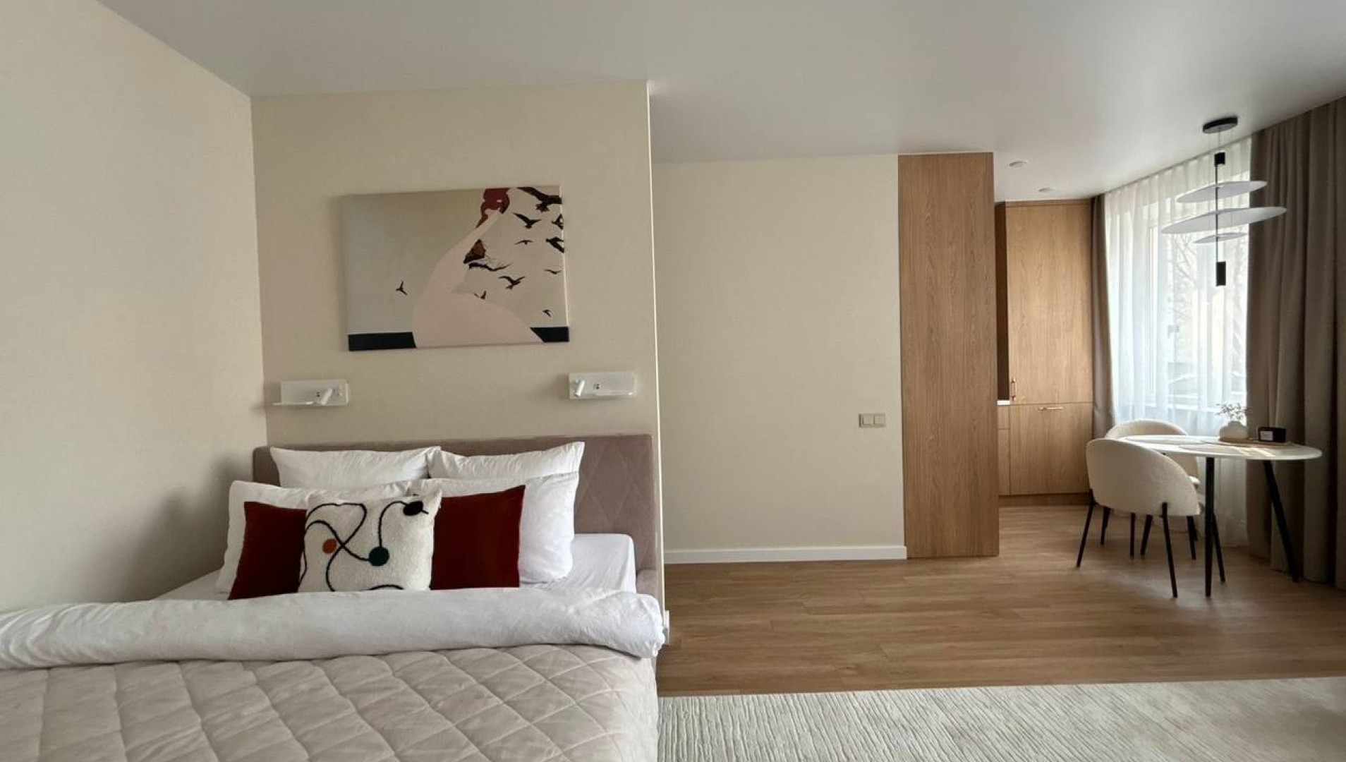 Convenient location near bus station and city stops will allow you to easily reach any point of the city, even those who are travelling by public transport. At the same time quiet courtyard will provide relaxation.