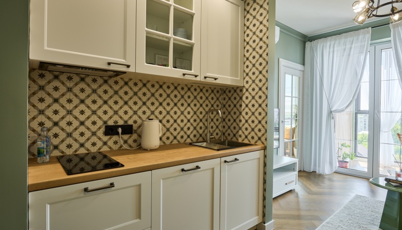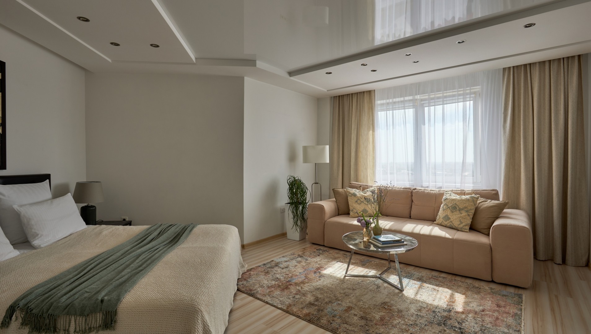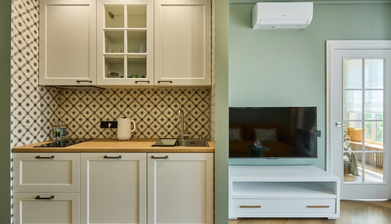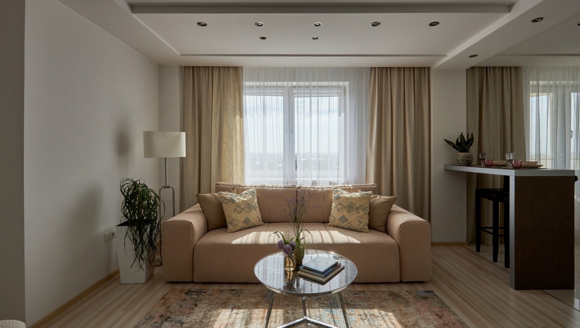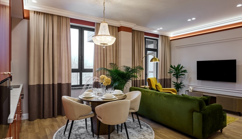 This elite one-room apartment is located in a new house on the 10th floor. From the window of this wonderful apartment is opened a beautiful panoramic view. The house is situated not far from the historical centre of the town. This is a new region is fully secured the necessary infrastructure. Near the house there is a paid-parking area, twenty-four-hour shop, trade center, chemistry. The modern apartment for wonderful rest. It’s become a favorites place to stay in.