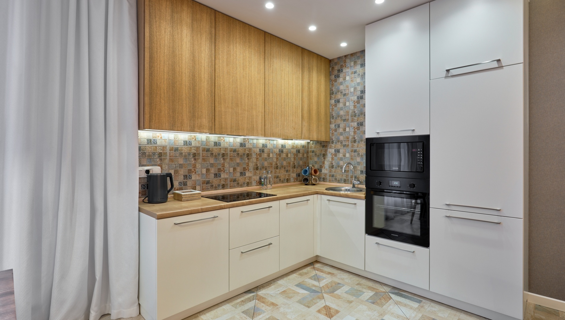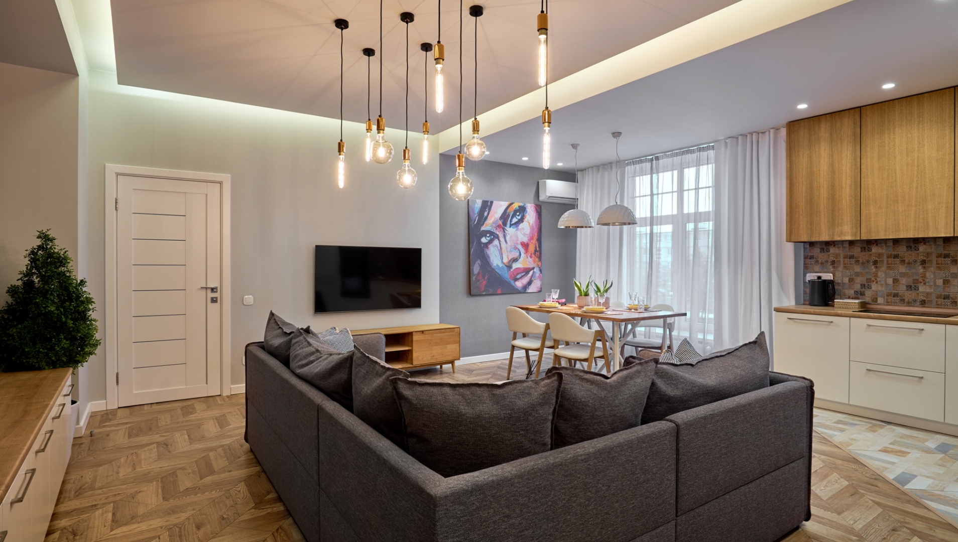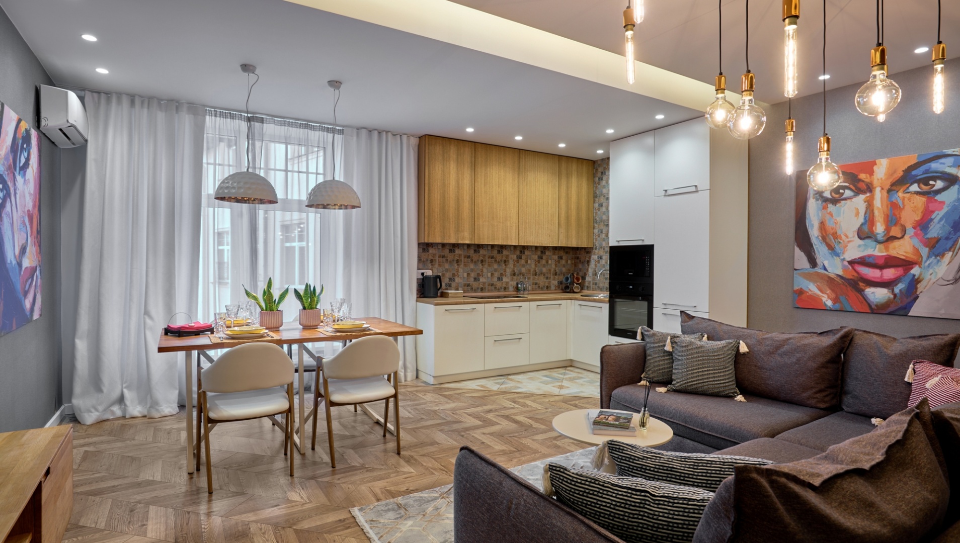 One-bedroom apartment in the center of Grodno. It is located on the third floor of a four-story brick house. The apartment is made with modern designer renovation with a redesign of the space. The living room is combined with the kitchen; adjacent to them an adjacent bedroom with a large double bed; spacious bath.