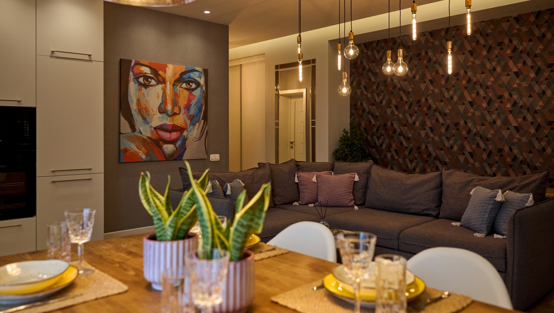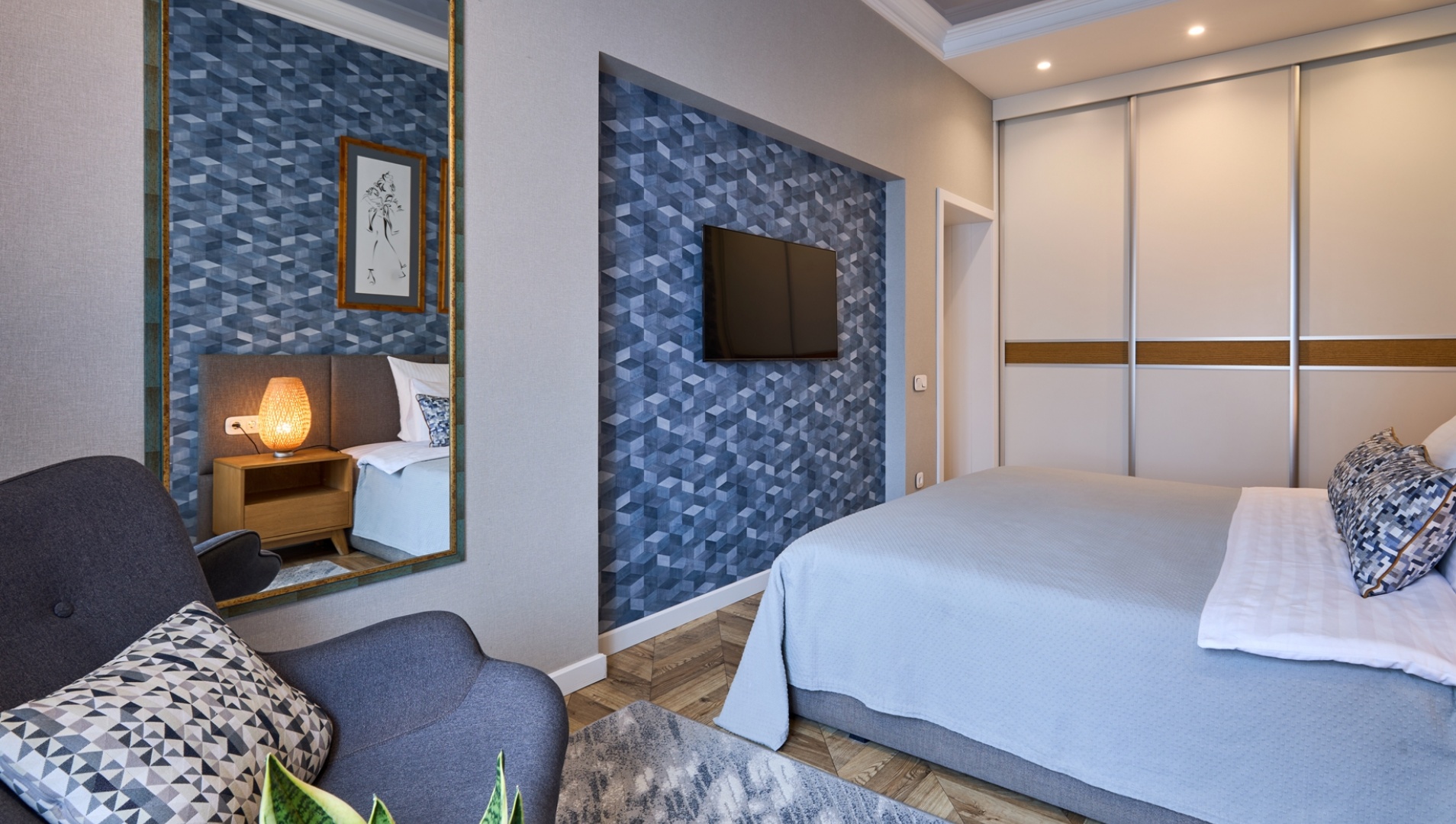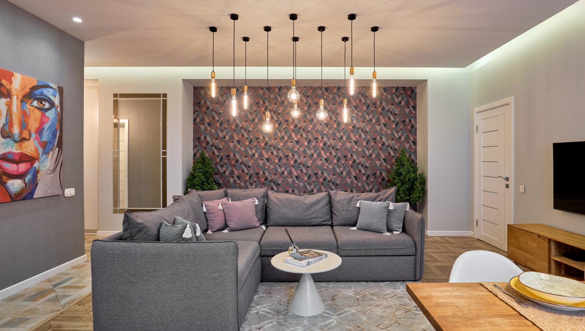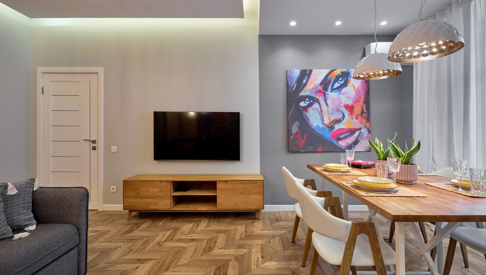 One-bedroom apartment in the center of Grodno. It is located on the third floor of a four-story brick house. The apartment is made with modern designer renovation with a redesign of the space. The living room is combined with the kitchen; adjacent to them an adjacent bedroom with a large double bed; spacious bath.