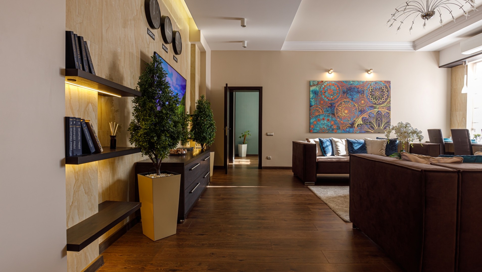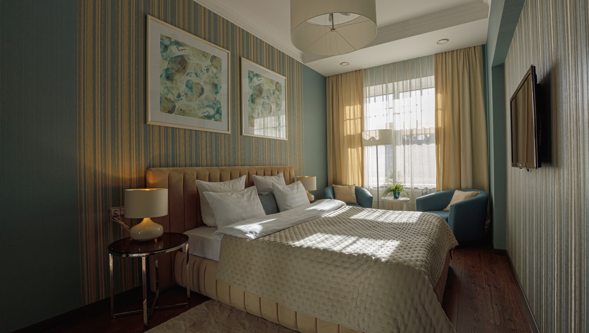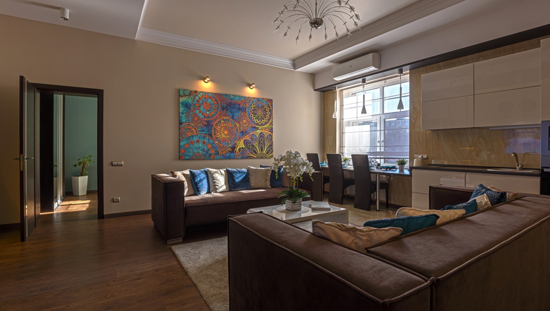 Luxury one bedroom apartment in the center of Grodno. Located on the second floor of a four-storey brick building. The apartment has modern designer renovation and redevelopment of space. Living room with open kitchen; adjacent is an adjacent bedroom with a Queen size bed; spacious bath equipped with Jacuzzi and shower cabin.