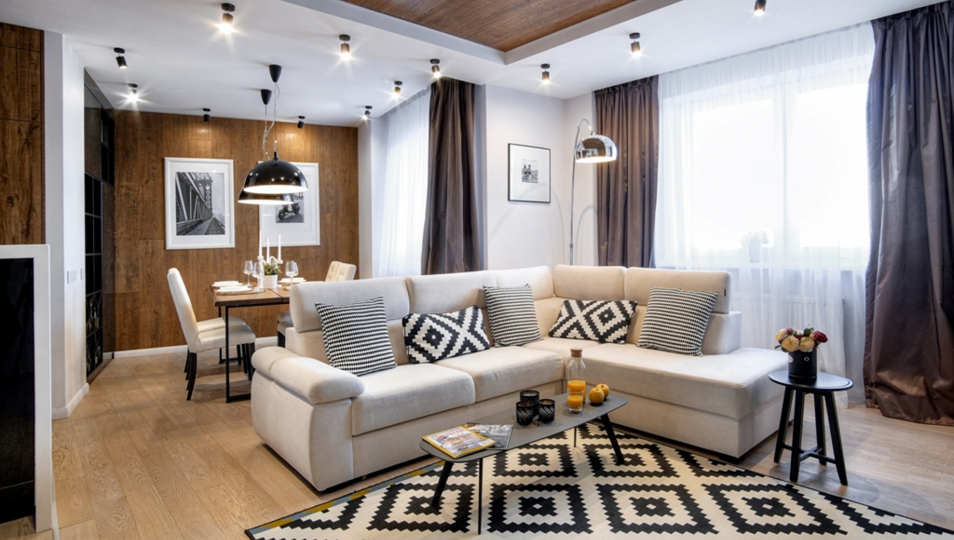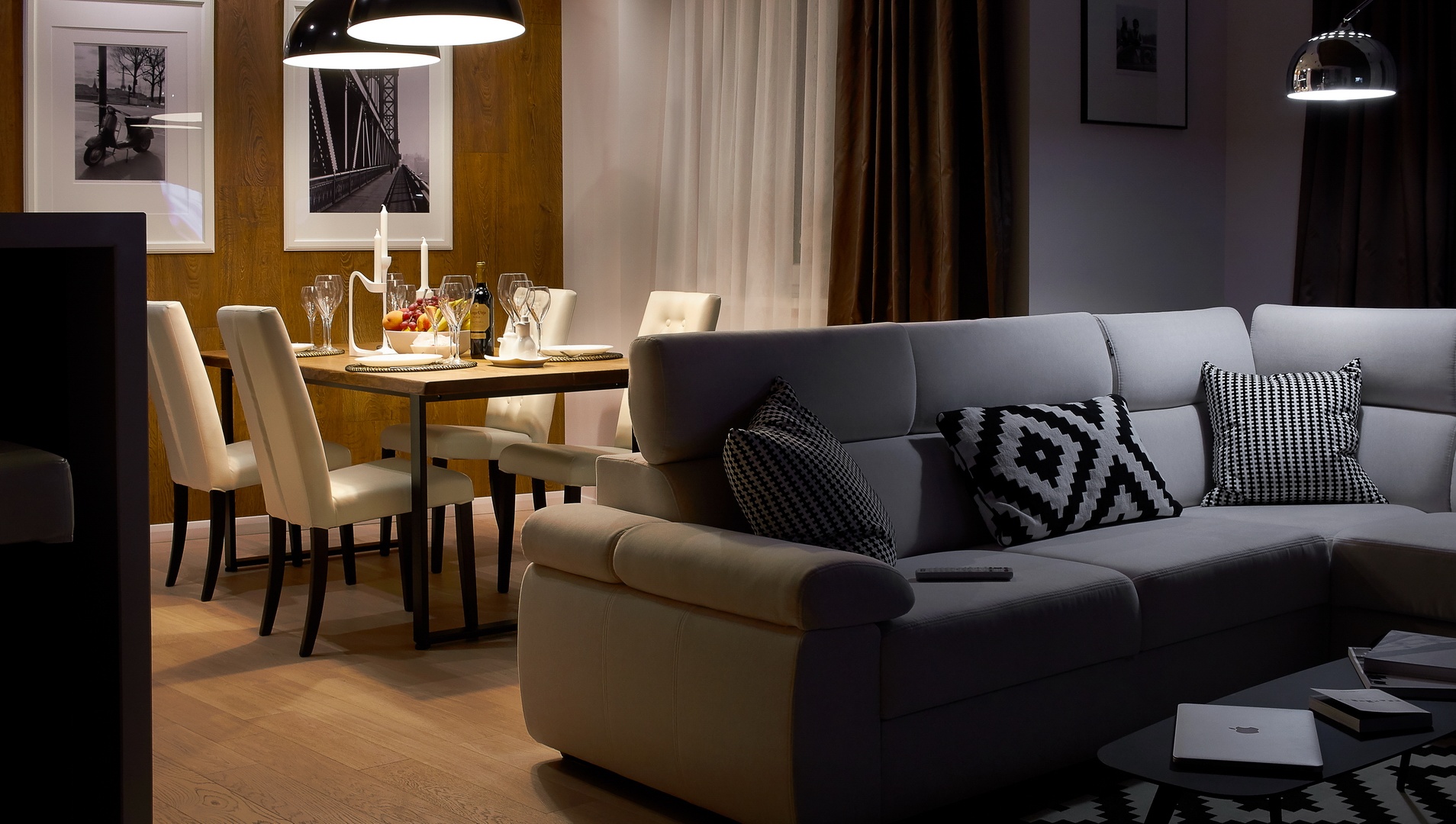 Квартира проста на вид, никаких кричащих излишеств, сдержанный скандинавский шик, наполненный по последнему слову техники.