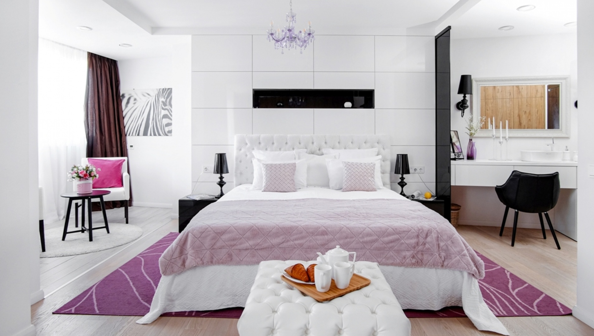 Спальня в этой квартире поистине гигантских размеров. Здесь и огромная двуспальная кровать,и читальный зал, и гардеробная, и туалетный столик.