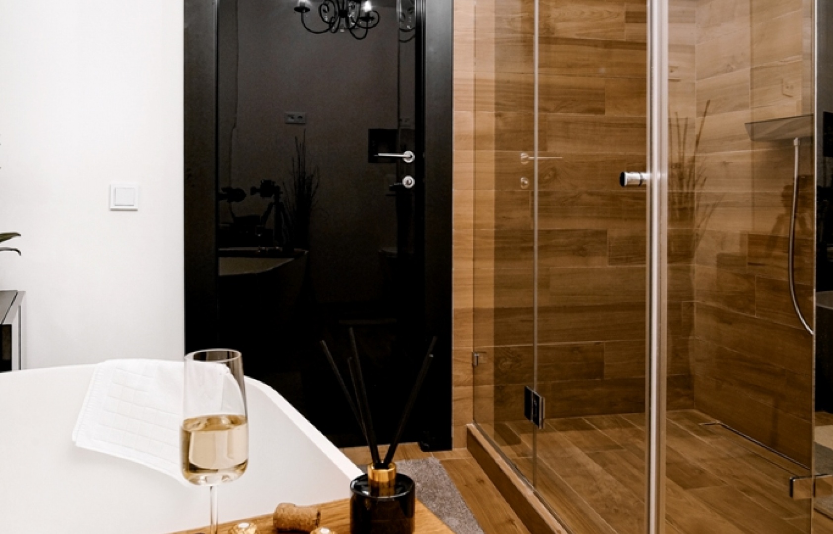 Две ванные комнаты, одна из которых-спа-салон с открытой каменной ванной и тропическим душем.