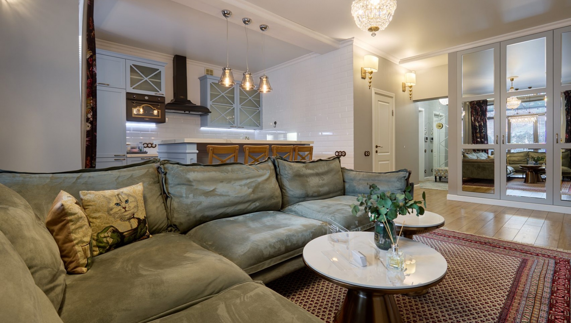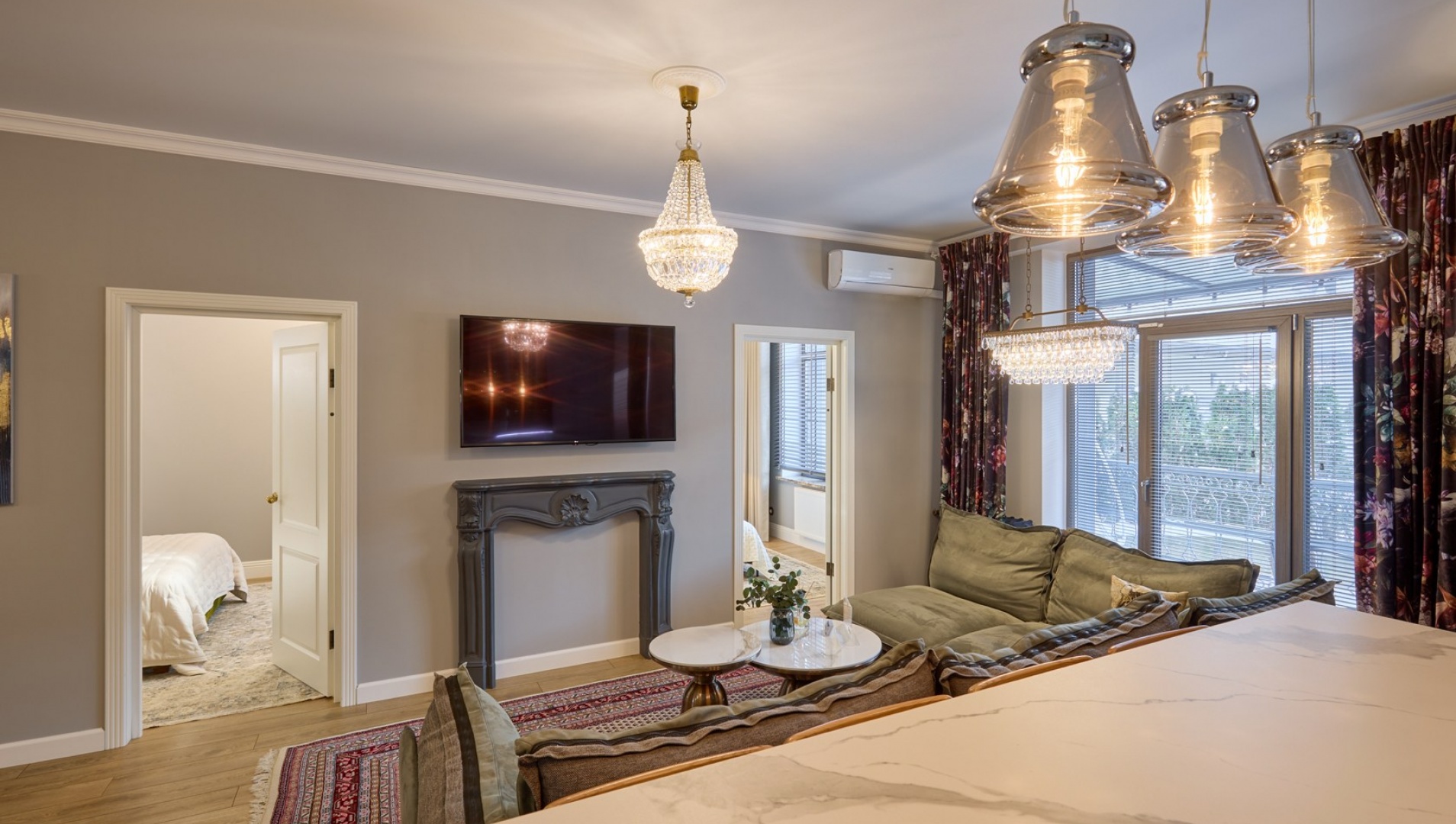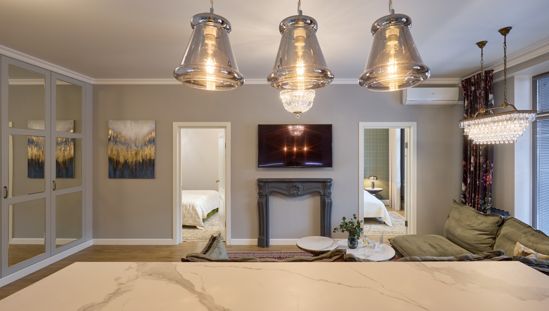 Dwupokojowe apartamenty znajdują się w luksusowym nowym domu niedaleko centrum miasta. Stąd tylko 10 minut niespiesznym spacerem do historycznej części Grodna, jednoczesnie to nowy rejon w całości zabezpieczony niezbędną infrastrukturą. Do Państwa usług płatny parking strzeżony, supermarket, centrum handlowe, apteka itd. Z okien tego luksusowego mieszkania otwiera się ładny panoramiczny widok miasta. Ekskluzywny wystrój wnętrz i wygodna lokalizacja nie zostawią obojętnym najbardziej wymagającego gościa. Państwo będą chcieli wrócić tu znów.